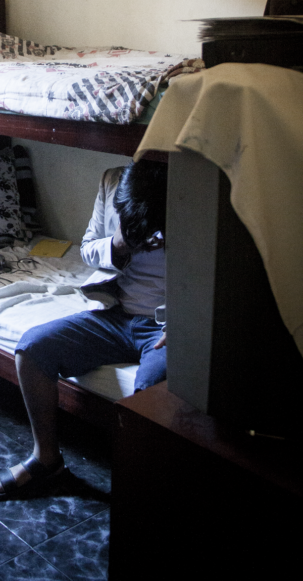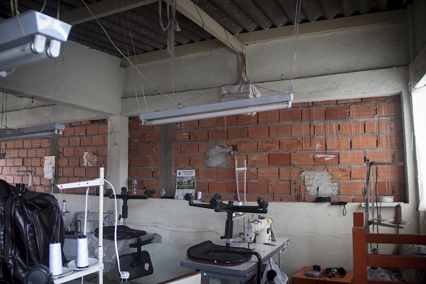 A parede é de tijolos aparentes, com reboco improvisado e tábuas tapando as janelas. O piso é de cimento, coberto de retalhos, linhas e sujeira. Há fios de eletricidades puxados de maneira improvisada por todos os lados, alguns perigosamente próximos de pilhas de tecido, e, em um canto da improvisada oficina de costura, uma caixa d´água. Para ficarem mais próximos das máquinas, os lustres pendem do teto amarrados por cordões em que é possível ler “Le Lis Blanc”, nome de uma das grifes mais caras do país. Espalhadas nas mesas estão etiquetas da marca, peças finalizadas e guias com orientações sobre tamanho e corte. Em cômodos próximos, ficam os trabalhadores bolivianos, vivendo em beliches em quartos apertados, alguns com divisórias improvisadas, recebendo por produção e cumprindo jornadas exaustivas.