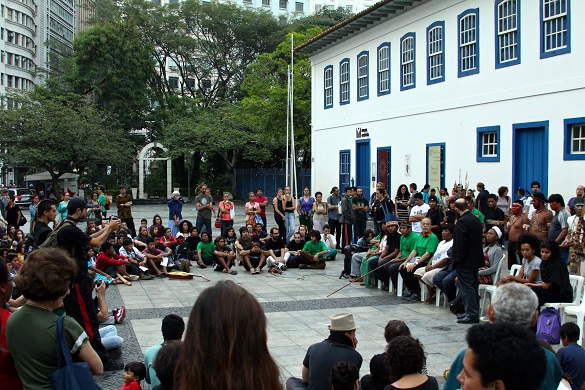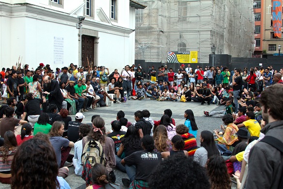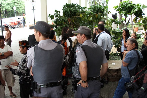 Dentro do museu, os índios dançaram, cantaram e tocaram instrumentos musicais, sob os olhares de funcionários e visitantes não índios. Um pouco antes do fechamento do prédio, distribuíram panfletos explicando os motivos da ocupação. De acordo com o comunicado divulgado por eles à imprensa, “interromper temporariamente as atividades do Museu, que celebra o local de fundação da cidade e início da colonização, foi a forma encontrada pelos habitantes originários de São Paulo para cobrar do Ministério da Justiça a emissão das Portarias Declaratórias que garantem a demarcação das Terras Indígenas Tenondé Porã e Jaraguá, já reconhecidas pela Funai”. Os guarani se concentraram na noite do dia 15 na Aldeia Tenondé Porá, onde realizaram um ritual de reza (veja no vídeo abaixo). De lá, partiram em micro-ônibus no início da tarde do dia 16 em direção à região central da cidade.