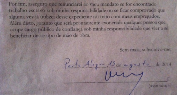 No primeiro turno da eleição presidencial, Marina Silva (PSB), Luciana Genro (PSol) e Eduardo Jorge (PV) também aderiram à Carta, que pode ser acessada pelo endereço www.compromissopelaliberdade.org.br. A Repórter Brasil tem sido responsável por organizar a assinaturas recebidas.