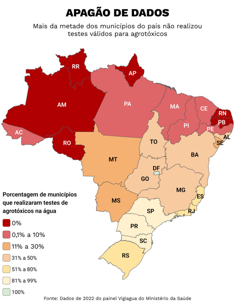 As informações são resultado de um cruzamento de dados realizado pela Repórter Brasil a partir de informações do Sistema de Informação de Vigilância da Qualidade da Água para Consumo Humano (Sisagua), do Ministério da Saúde, com testes feitos em 2022.