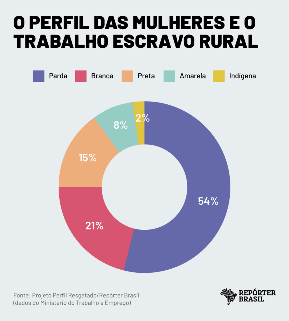 Dados da Contar (Confederação Nacional dos Trabalhadores Assalariados e Assalariadas Rurais) indicam que o Brasil tem cerca de 12 milhões de pessoas em atividade no campo. Cerca de 12% deles são mulheres. Na média dos 21 anos cobertos pelo Projeto Perfil Resgatado, menos de 7% dos trabalhadores rurais resgatados no meio rural brasileiro são do sexo feminino.