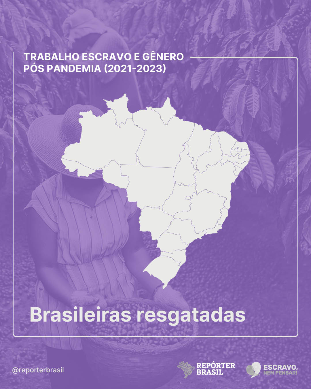Dentre elas, 81% eram negras e 83% tinham de 18 a 49 anos. Minas Gerais é o principal estado de resgate, com 47% de trabalhadoras resgatadas, e também o principal estado de origem (41%). A atividade com mais registros foi na agricultura (52%), principalmente na produção de café (27%).